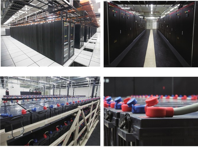 整个机房供电,市电分 ① 华北、 ② 华中、③ 东北三大电网分别引入大厦,单个机房供电,采用不同路的双路径供电楼内2个不同的强电竖井机房采用上走线方式,线缆爬架分为两层,上层为电力线缆使用,下层为通信电缆及高频传输电缆使用,另单设光缆槽道。总供电量15000KVA。每个机柜供电量为13A冗余电源由2路不同的UPS通过不同的路由为机柜交叉供电